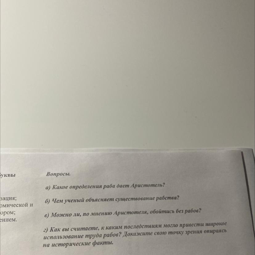 В) Финли, античное общество рассматривало рабство как естественную и органическую часть своего существования. ... Аристотель в самом начале своего знаменитого трактата «Политика» теоретически обосновывал необходимость рабства как социального института, без которого была бы невозможна «благая жизнь» его соотечественников.