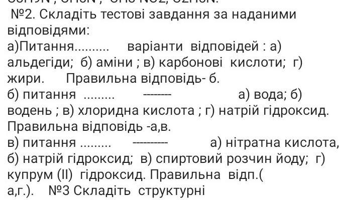 Объяснение:1. Похідні амінокислот (відповідь б - аміни); 2. Які з варіантів відповідей дуже просто реагують між собою? (а,в); 3. Позначте кислоту та реактив з валентністю ІІ. (а, г).