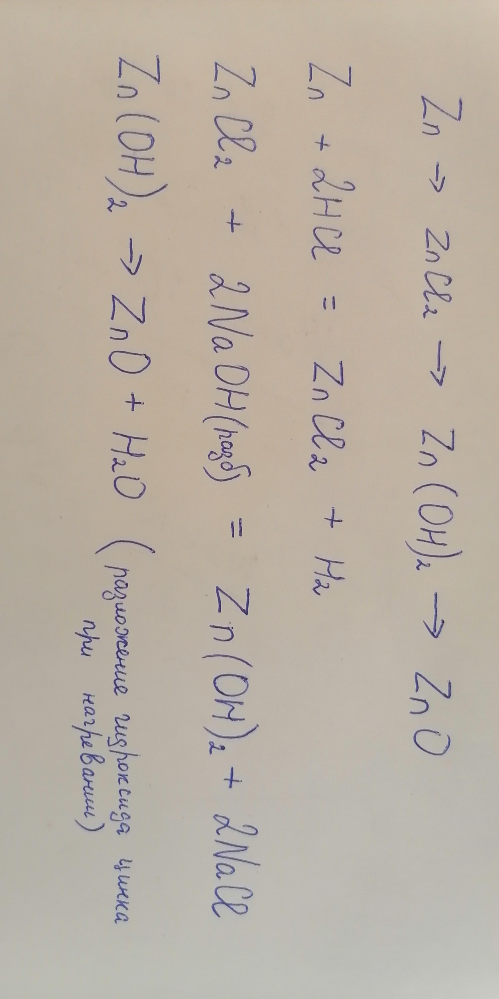 цинк - хлорид цинка — гидроксид цинка – оксид цинка