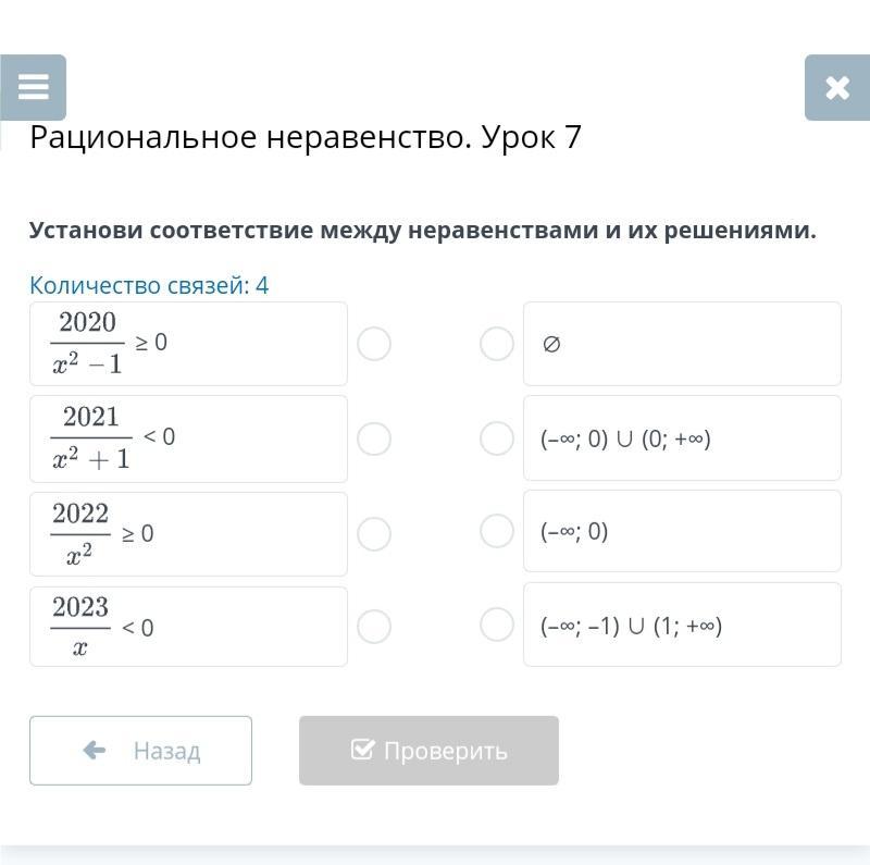 Установи соответствие между неравенствами и их решениями.