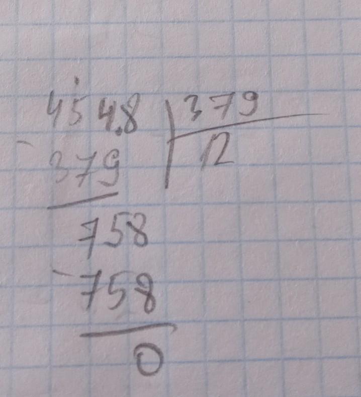 Определи частное при делении числа 4548 на число 379 в столбик:
