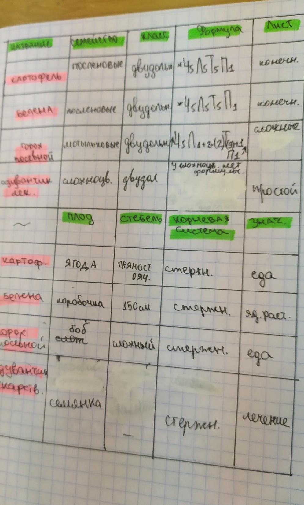 таблица двудольные