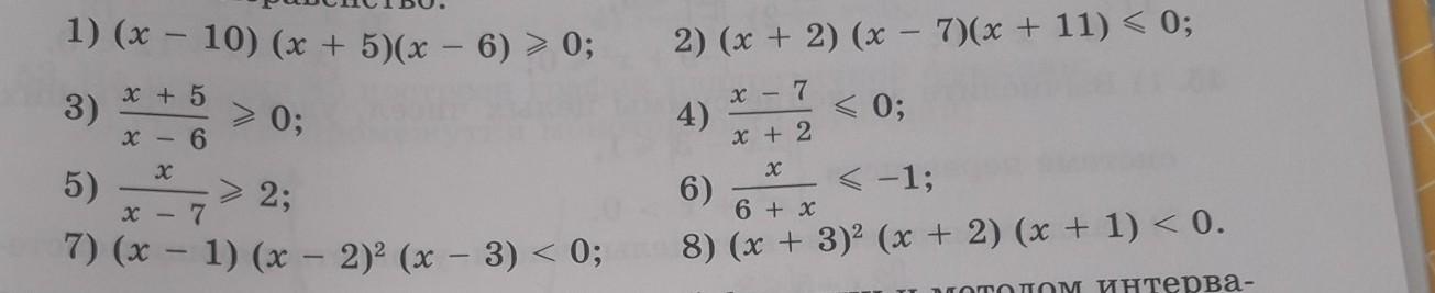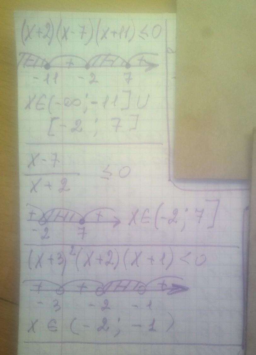 2) (x + 2) (х – 7)(х + 11) < или =0;
