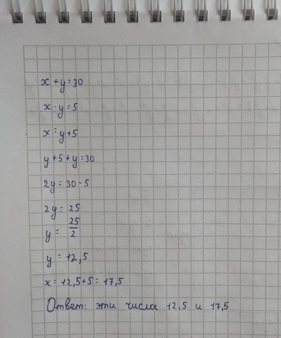 Ответ : эти числа 12,5 и 17,5 . Решение на фото .