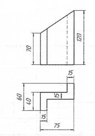 Чертёж детали из трёх проекций, выполненный от руки с сохранением пропорций на глаз, см. на фото.
