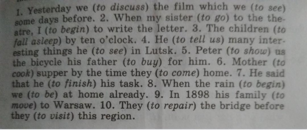 Запишіть речення, використовуючи дієслова в дужках у Past Simple або Past Perfect.. Допоможіть