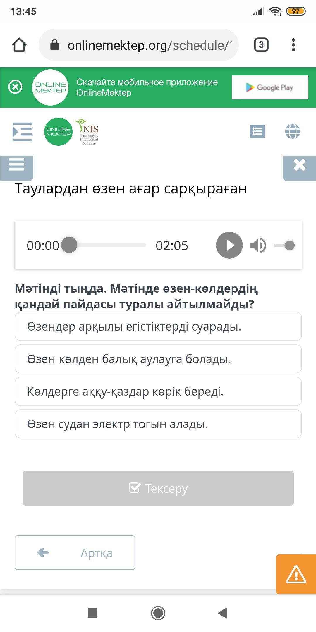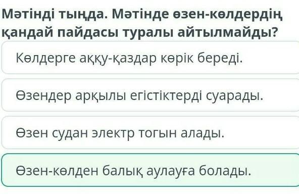 Таулардан өзен ағар сарқыраған Өзендер арқылы егістіктерді суарады. Өзен-көлден балық аулауға болады. Көлдерге аққу-қаздар көрік береді. Өзен судан электр тогын алады.