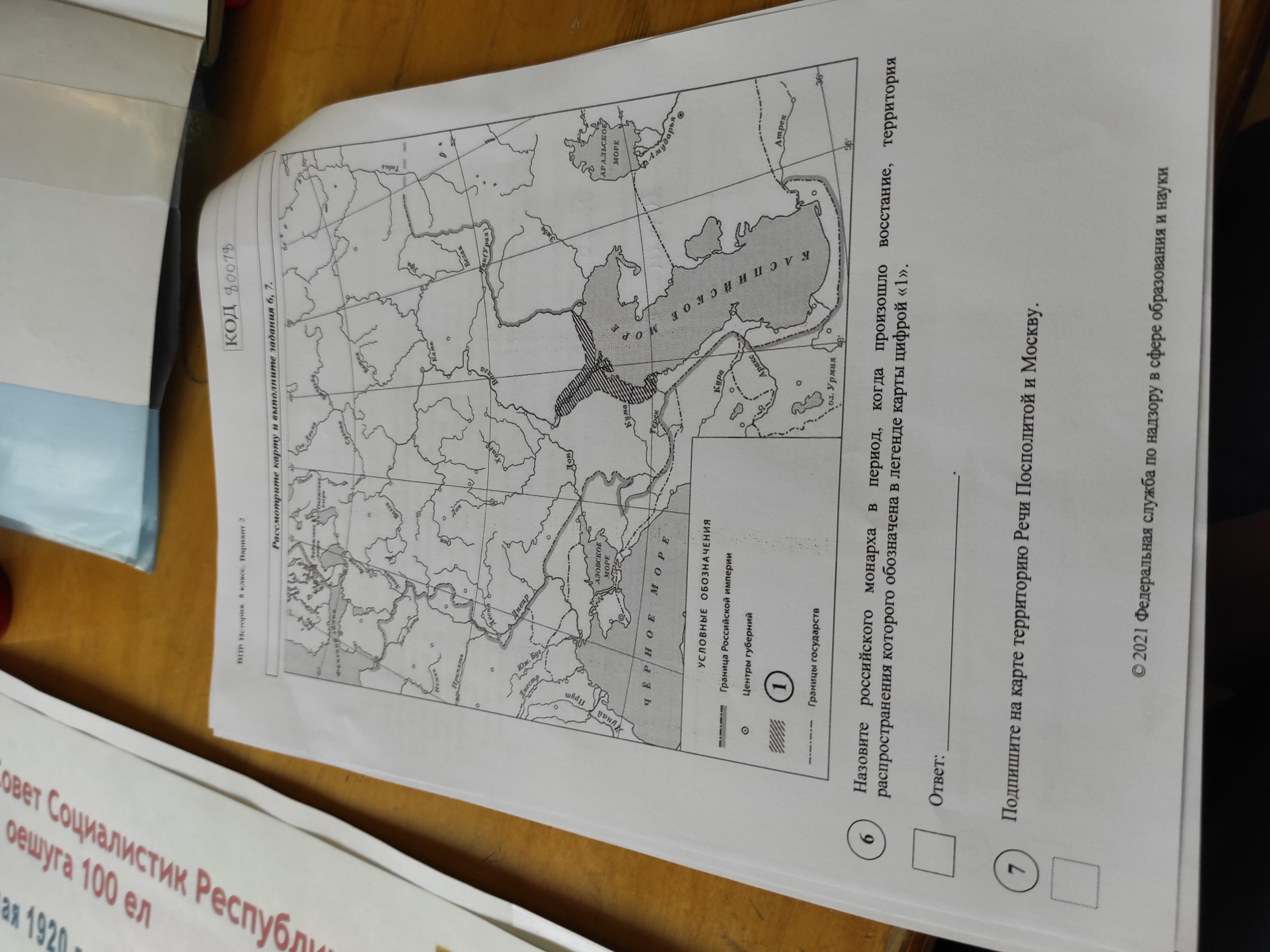 Назовите российского монарха в период когда произошло восстание территория распространения которого обозначена в легенде карты 7 тоже сделайте пж