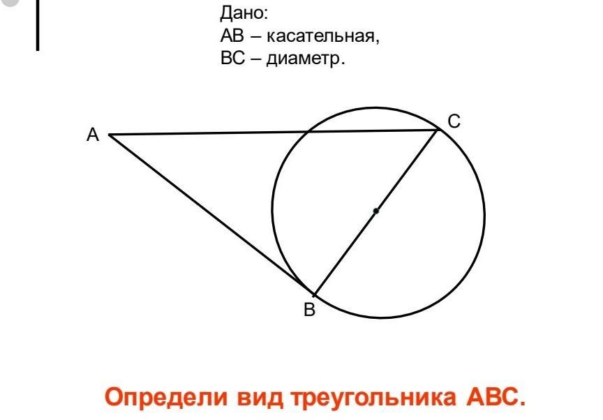 Диаметр это 2 радиуса, а радиус перпендикулярен касательной. Образуется прямой угол=> треугольник прямоугольный.