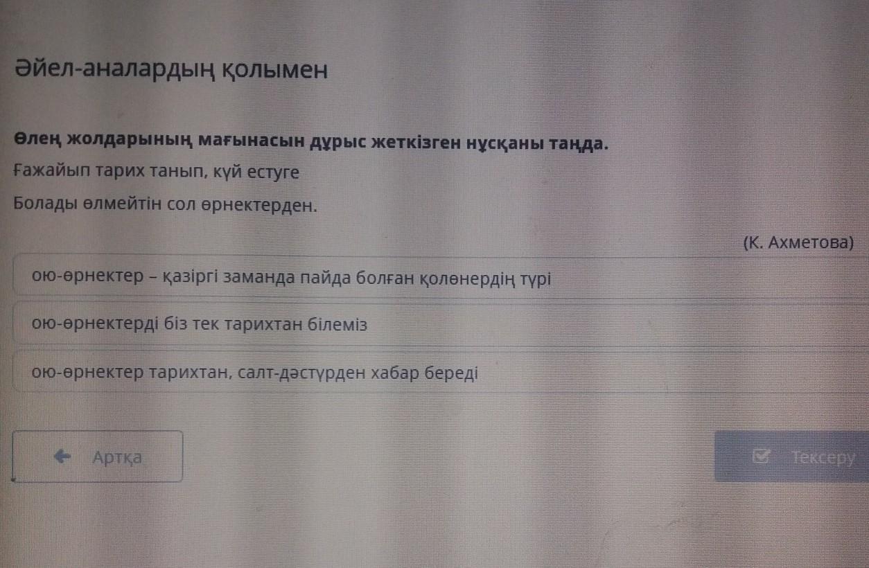 өлең жолдарының мағынасын дұрыс жеткізген нұсқаны таңда.