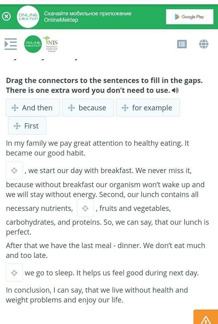 Drag the connectors to the sentences to fill in the gaps. There is one extra word you don’t need to use.