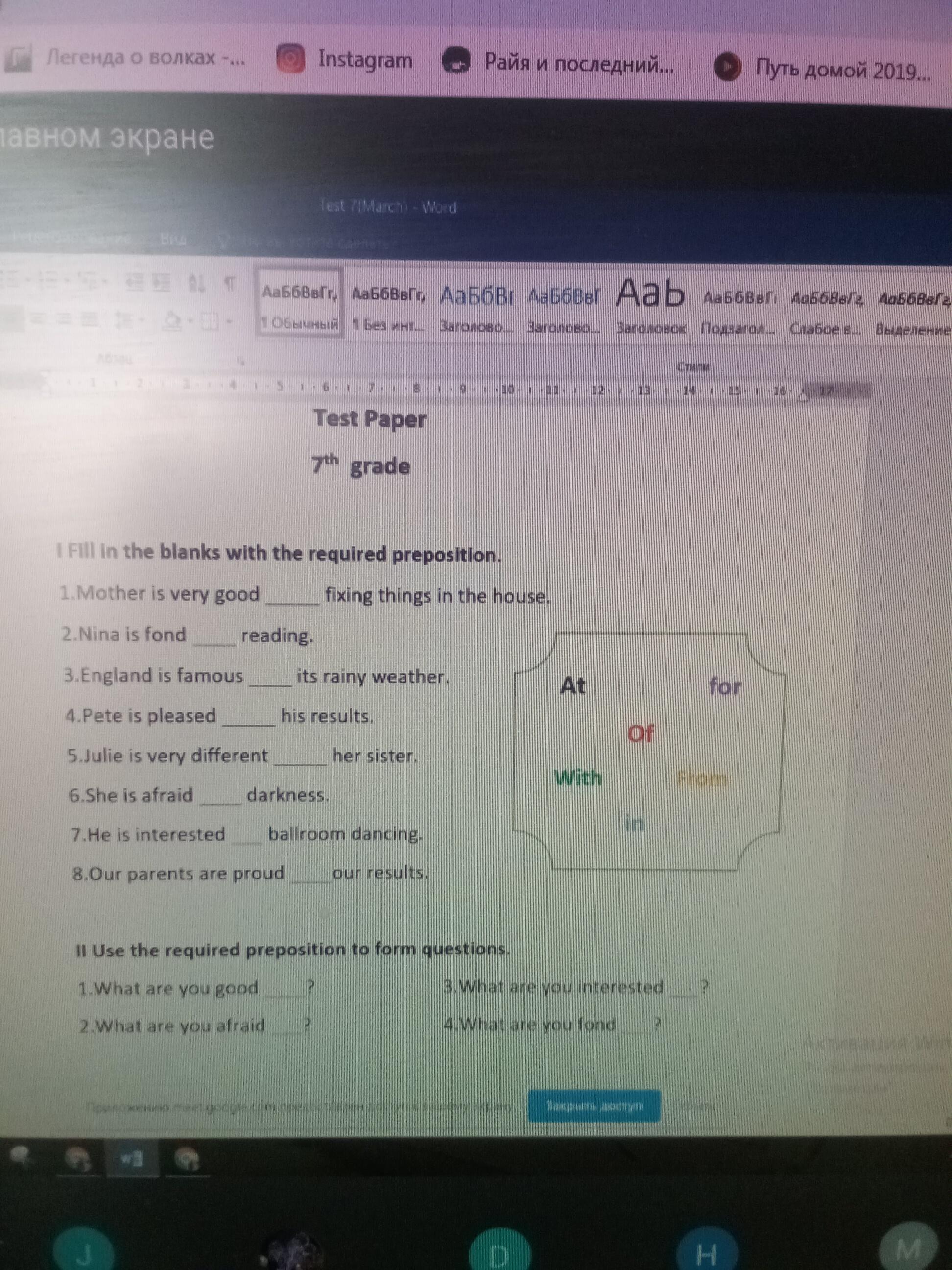 6. afraid of.