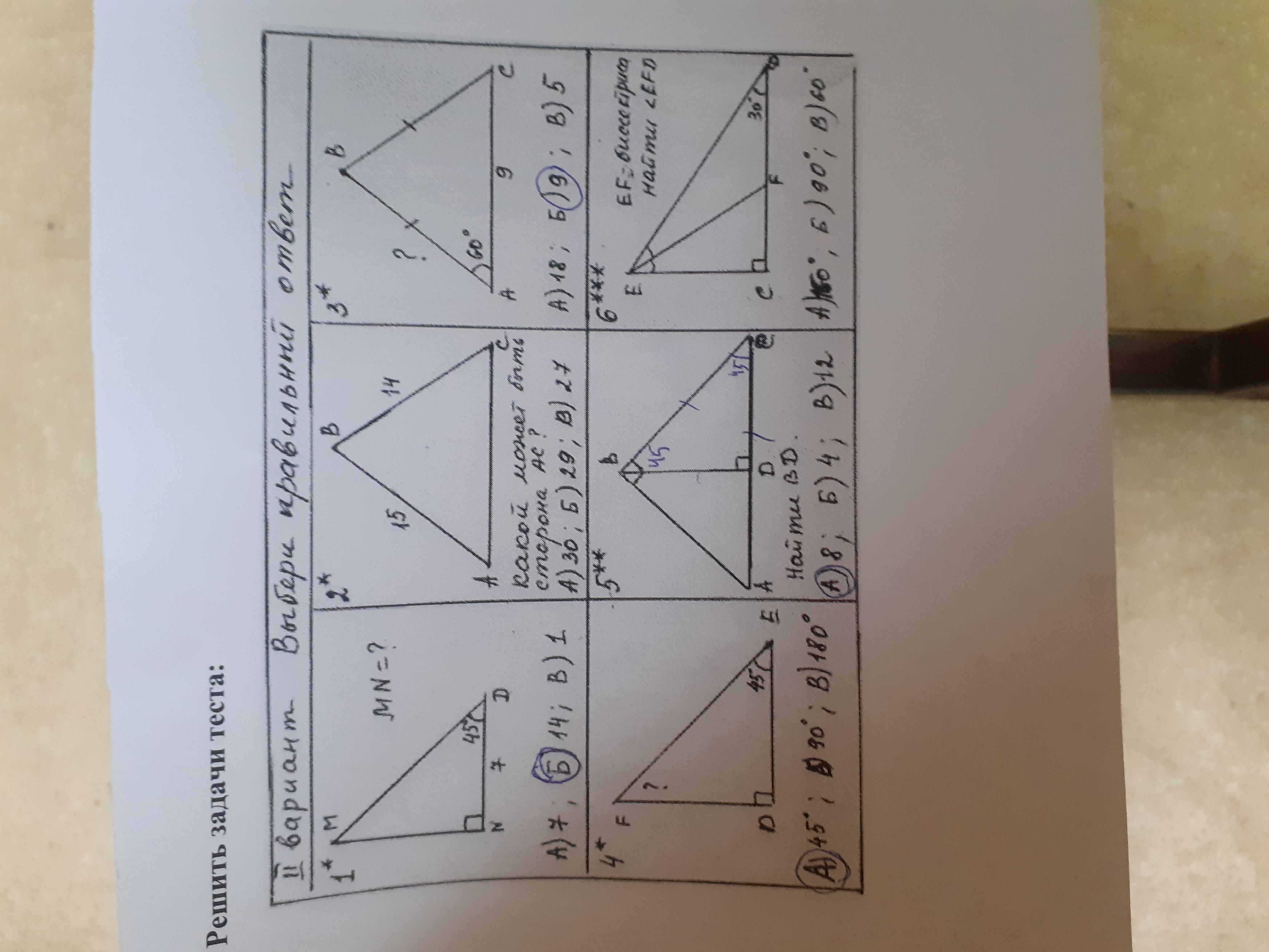 4) у треугольника все углы равны 180 ,90 градусов обозначает квадрат на уголке и ещё дали 1 в 45 градусов 180-45-90= 45