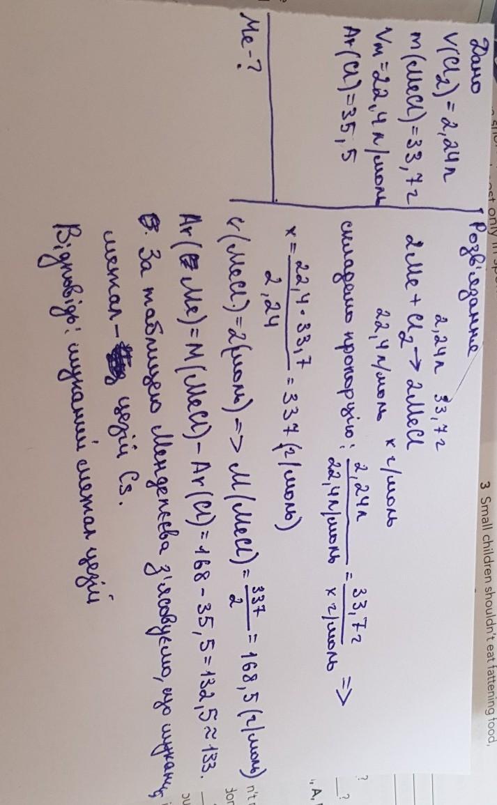 При взаємодії лужного металу з хлором об’ємом 2,24л (н.у) отримали 33,7г його хлориду. Визначити лужний елемент