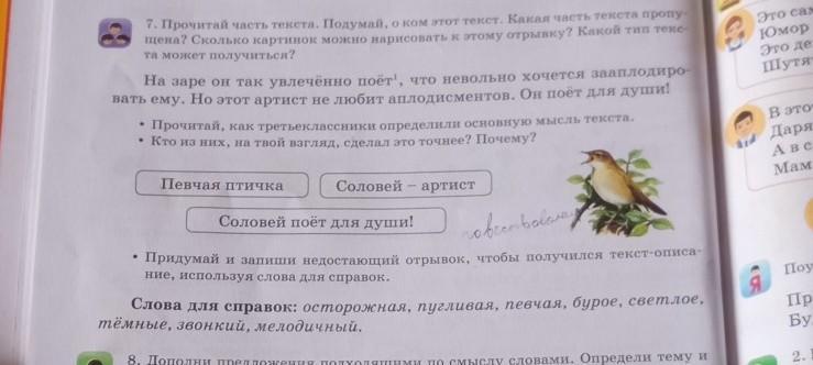 Прочитай, как третьеклассники определили основную мысль текста.