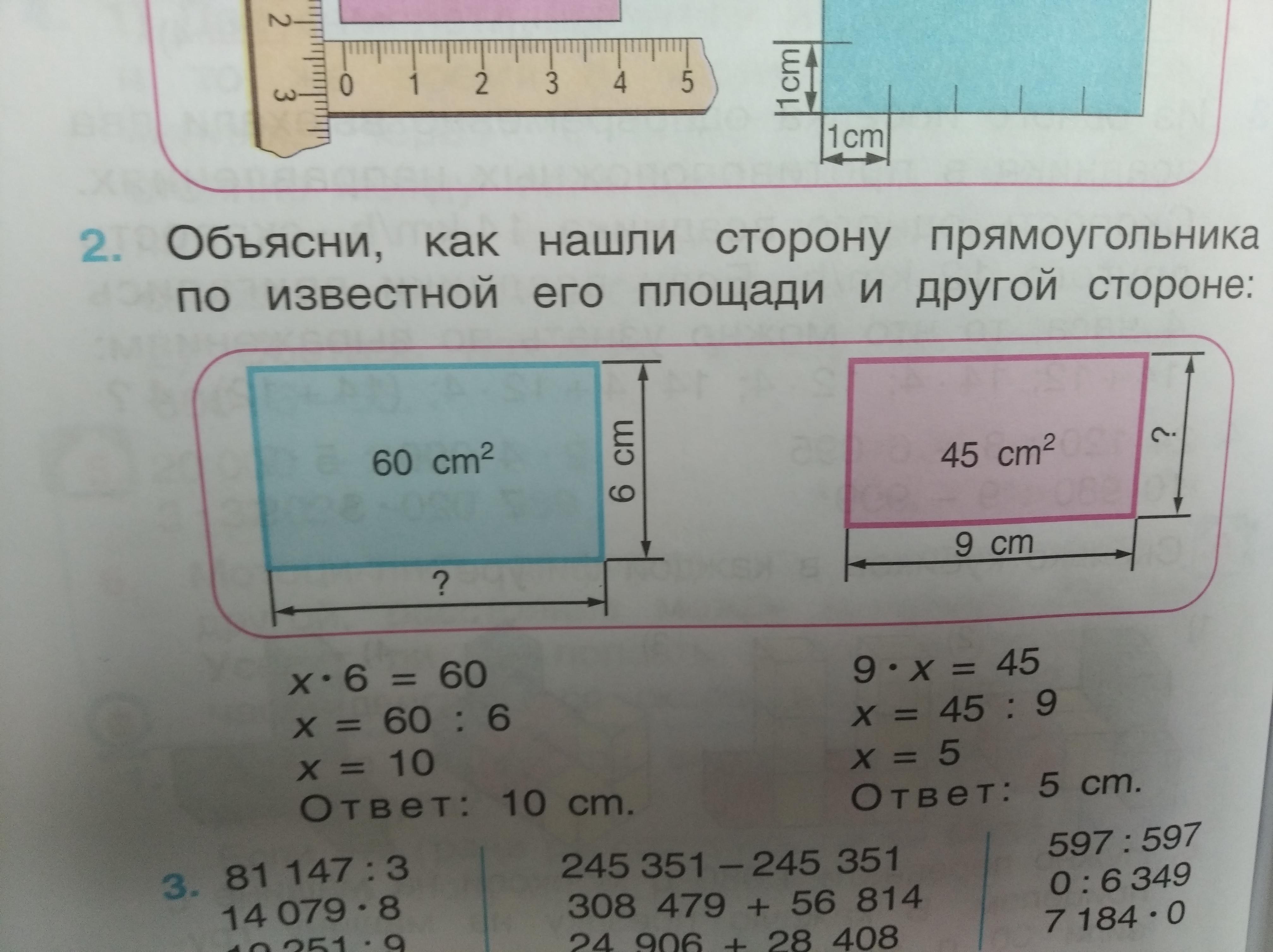 Площадь прямоугольника = произведение двух соседних сторон.