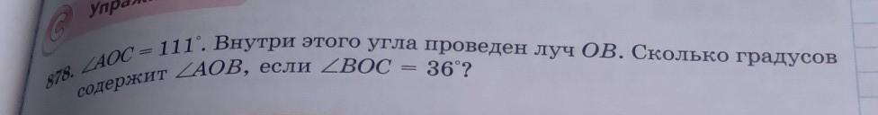 угол AOC равно 111 градусов внутри этого угла проведён Луч OB Сколько градусов содержит угол АОВ Если BOC равно 36⁰?