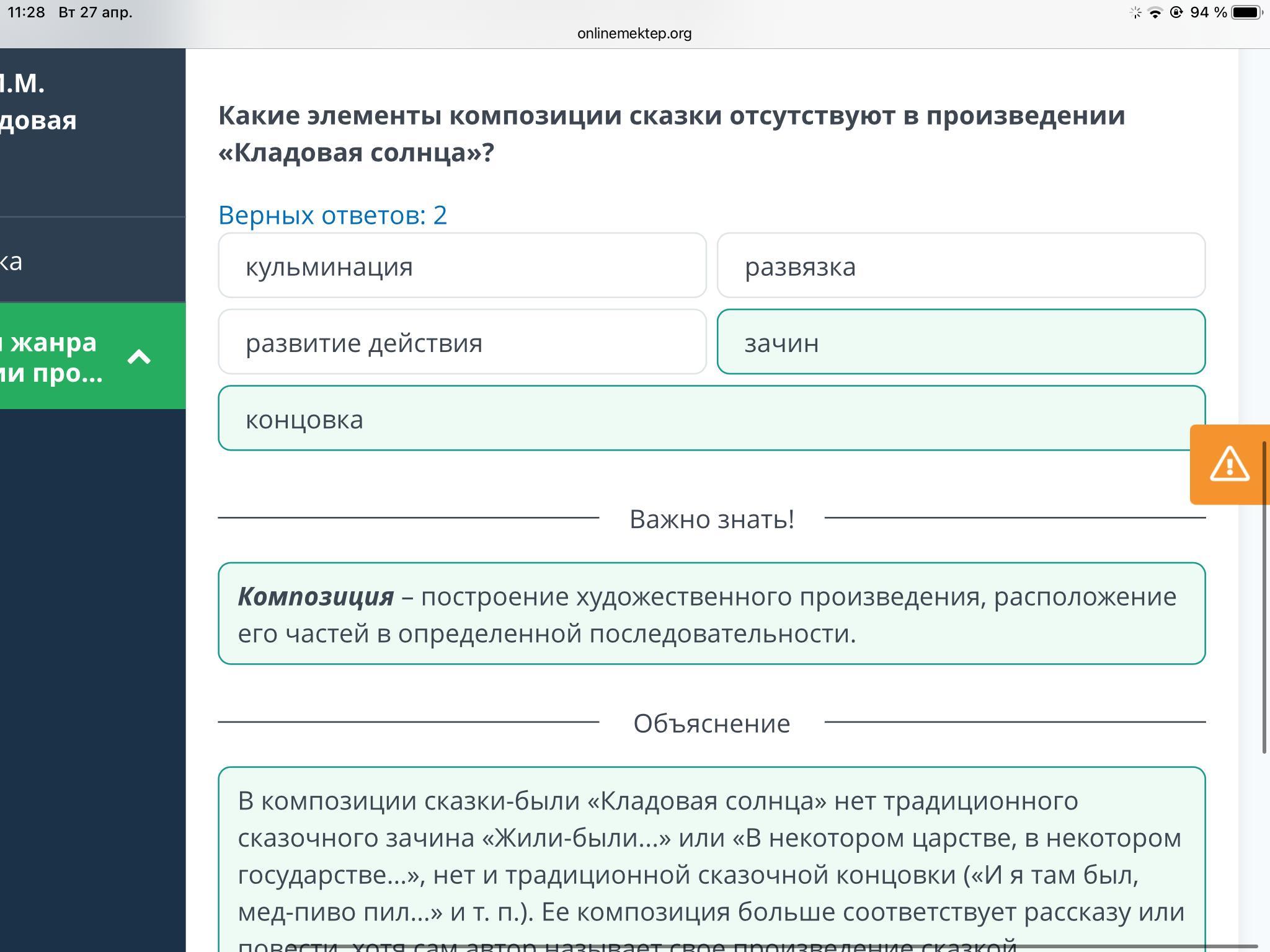 Какие элементы композиции сказки отсутствуют в произведении «Кладовая солнца»?