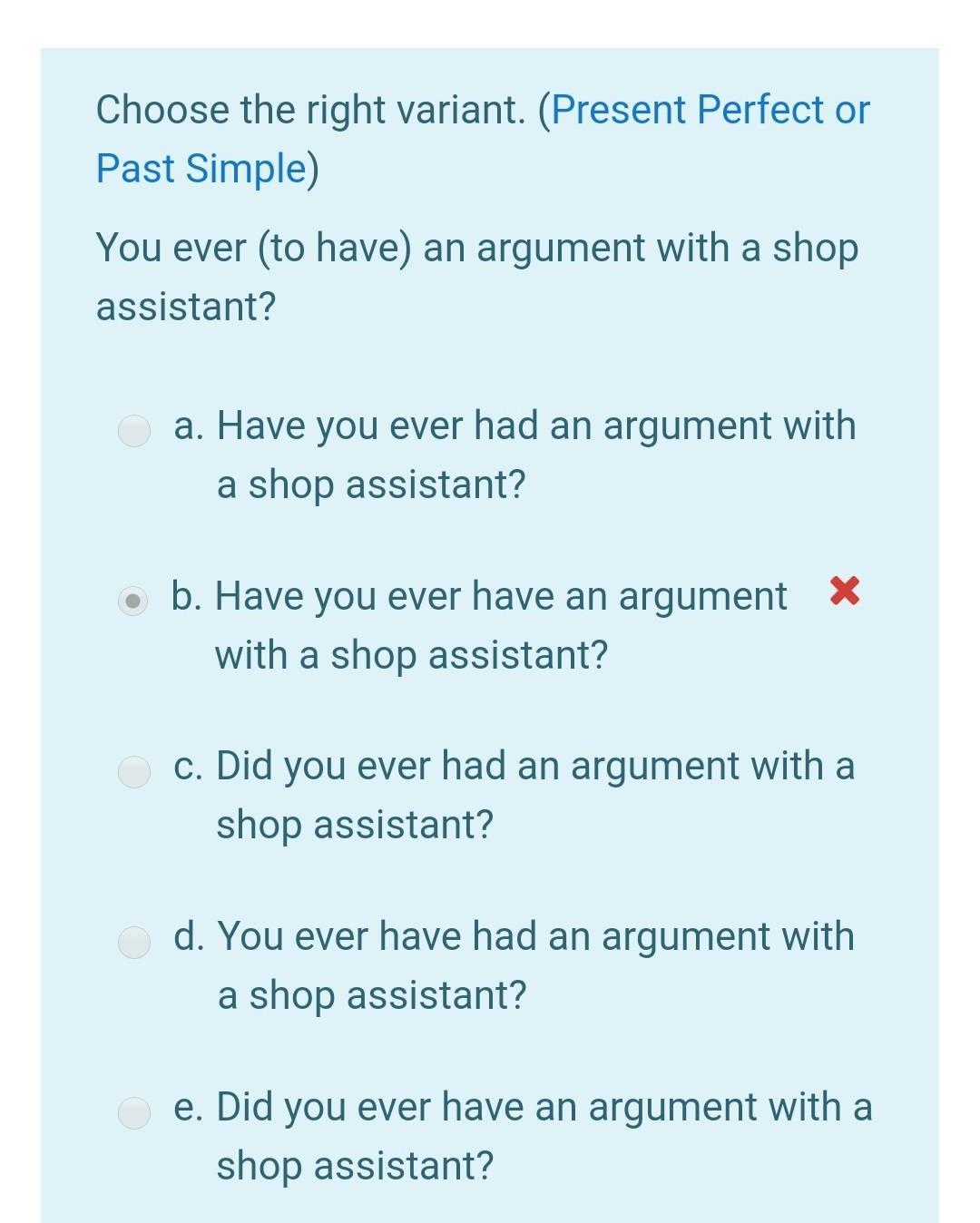 В вопросе не указывается определенное время и его завершение, значит это Present Perfect. По правилам строения предложенийв пёрфекте, вариант а является верным.