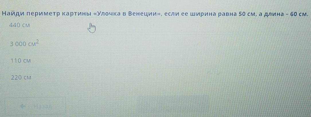 Ответ: периметр картины "Улочка в Венеции" равен 220 сантиметрам.