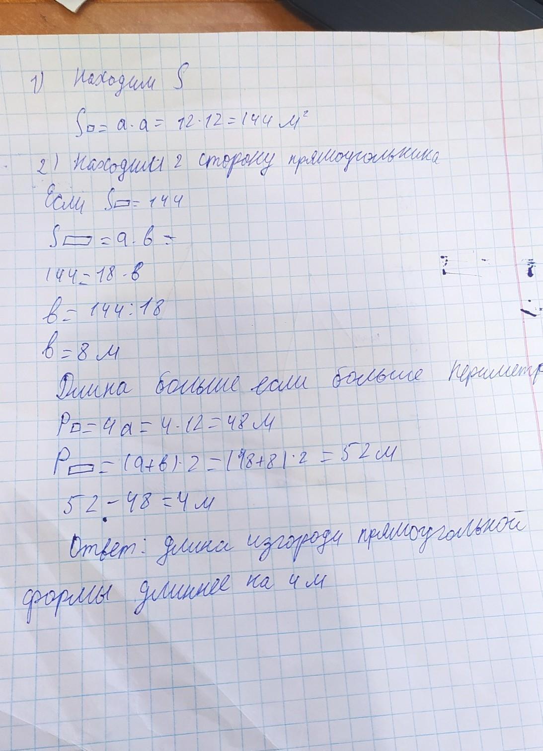 1) 12*12 = 144 (м2) - площадь квадратного участка.