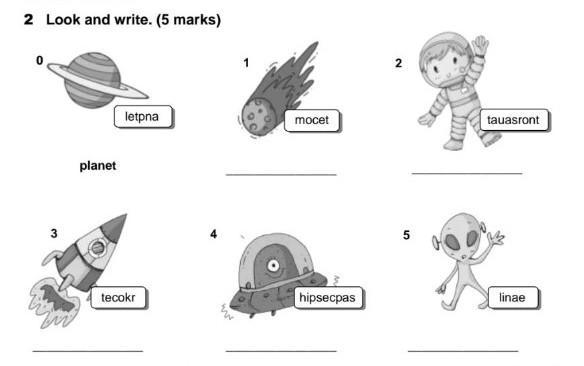 1 comet 2 astronaut 3 rocket 4 spaceship 5 alien