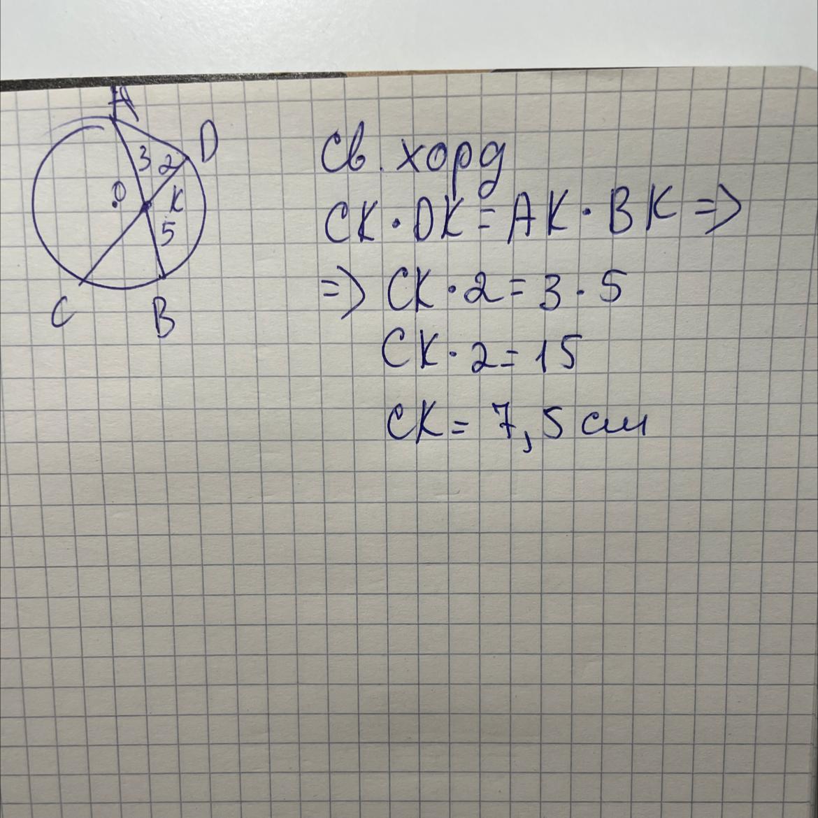 решается через свойство хорд