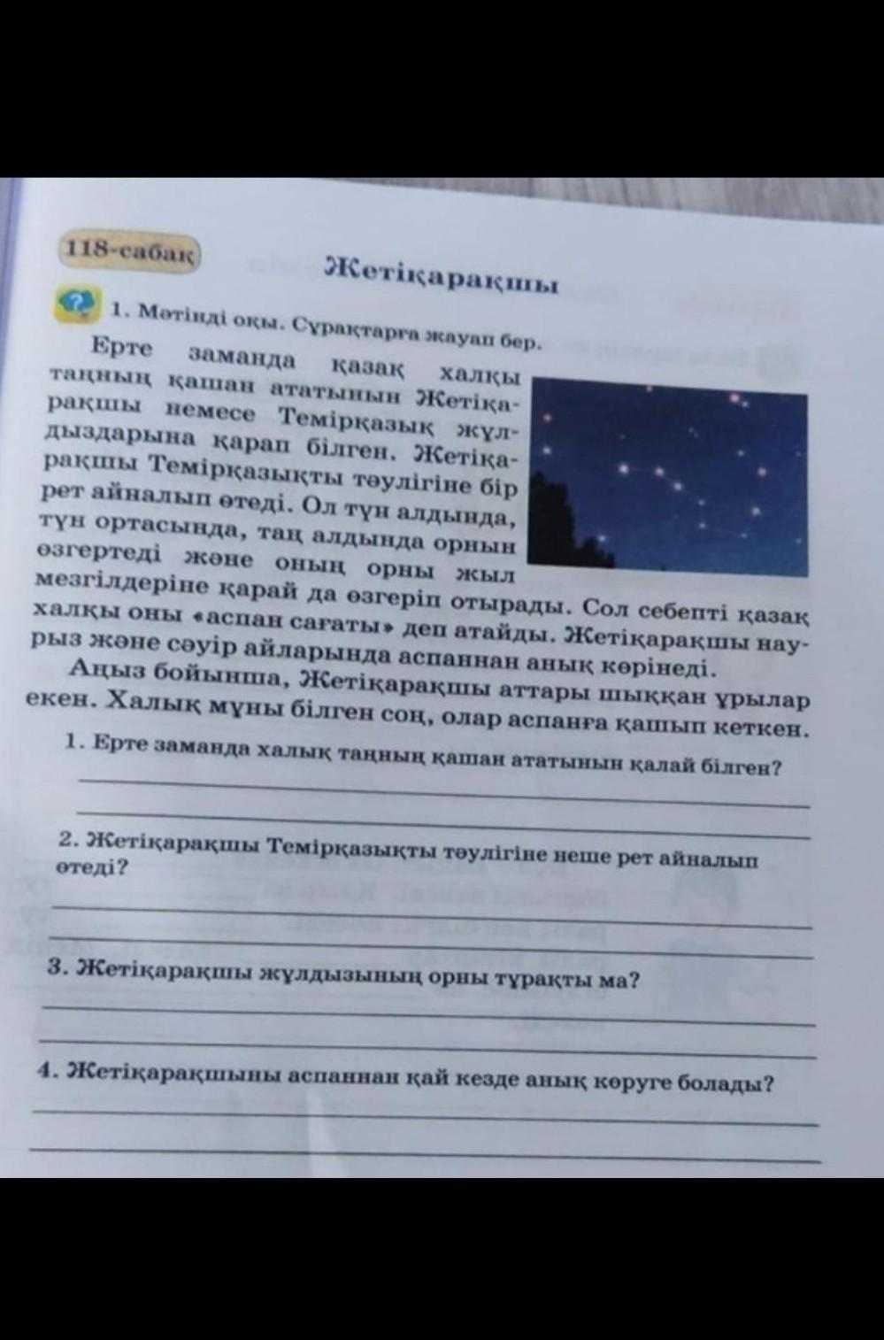 3. Жоқ. Себебі ол түн алдында, түн ортасында, таң алдында орнын өзгертеді және оның орны жыл мезгілдеріне қарай да өзгеріп отырады.