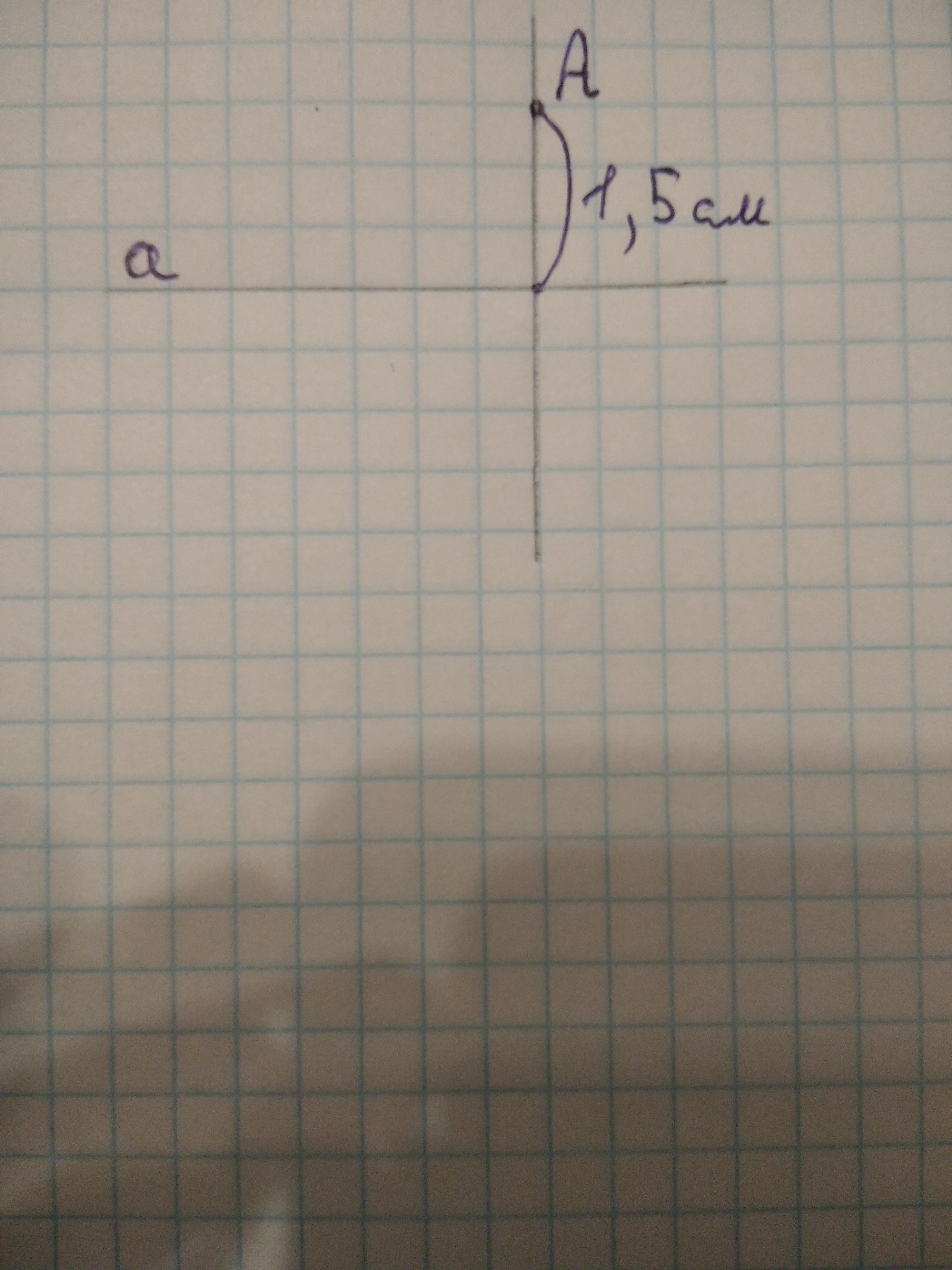 3) Побудуйте пряму а і т. А, шо не лежить на цій прямій, Проведіть пряму, що проходить через т. А і перпендикулярна прямій а. Виміряйте відстаны від точки до прямої.