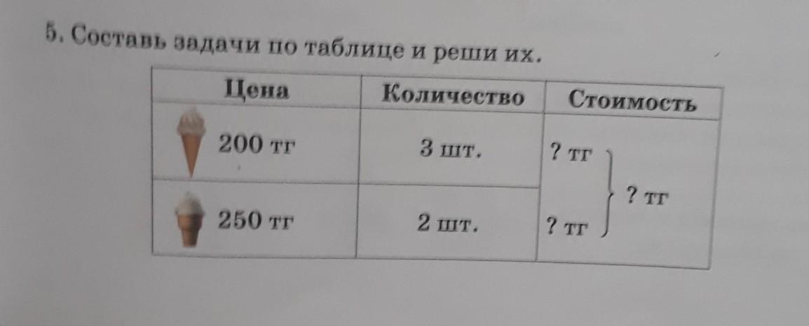 5. Составь задачи по таблице и реши их.