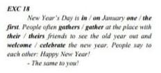 New Year's Day is on January the first People gather at the place with their friends to see the old year out and celebrate the new year, People say to each other: Happy New Year!