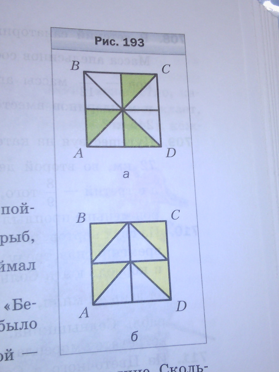 Сторона квадрата ABCD равна 8 см. Найдите площадь закрашенных частей квадрута.