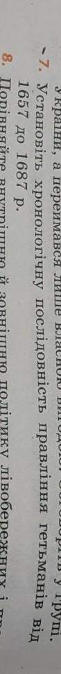 1) Іван Виговськи 1657-1659 2) Юрій Хмельницький 1659-1663 П.У. 3) Павло Тетеря 1663-1665 4) Петро Дорошенко 1665-1676 5) Юрій Хмельницькій 1677-1681? Л.У. 3) Іван Брюховський 1663-1668 4) Демян Многогрішний 1669-1672 5) Іван Самойлович 1672-1687 6) Іван Мазепа 1687-1708(1709)