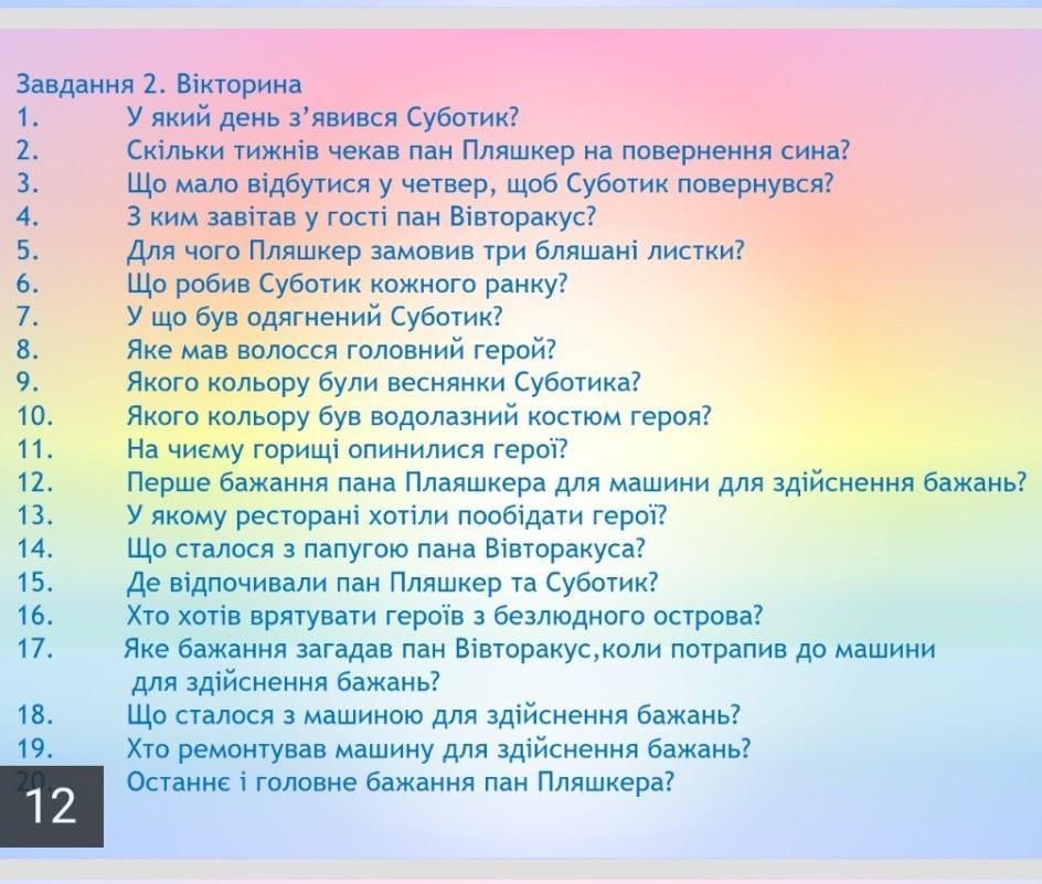 17. Яке бажання загадав пан Вівторакус, коли потрапив до машини для здійснення бажань? (Щоб вони опинилися під дверима будинку)