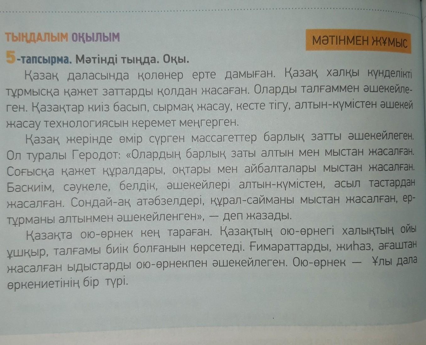 1.102-бет, 5- тапсырма. Мәтінді оқы, түсін.