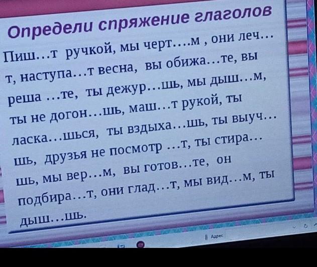 Відповідь:Пишет ручкой, мы чертим, они лечат, наступает весна, вы обижаете, вы решаете, ты дежуришь, мы дишим, ты не догонишь, машет рукой, ты ласкаешься, ты вздыхаешь, ты выучишь, друзья не посмотрят, ты стираешь, мы верим, вы готовите, он подбирает, они гладят, мы видим, ты дышишь.
