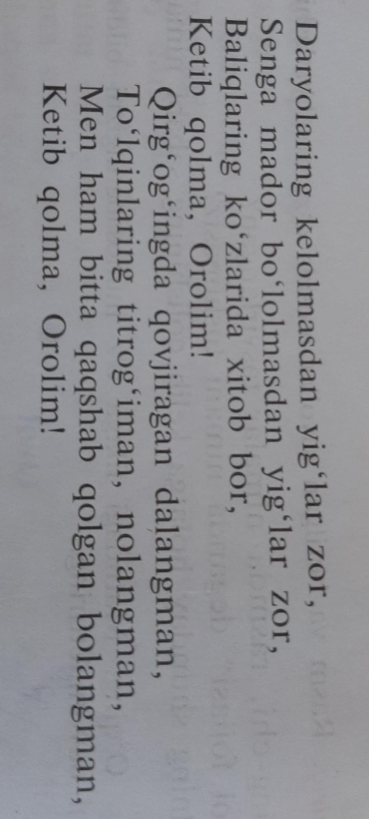 6- topshiriq. She'rni o'qing va mazmunini soʻzlab bering.