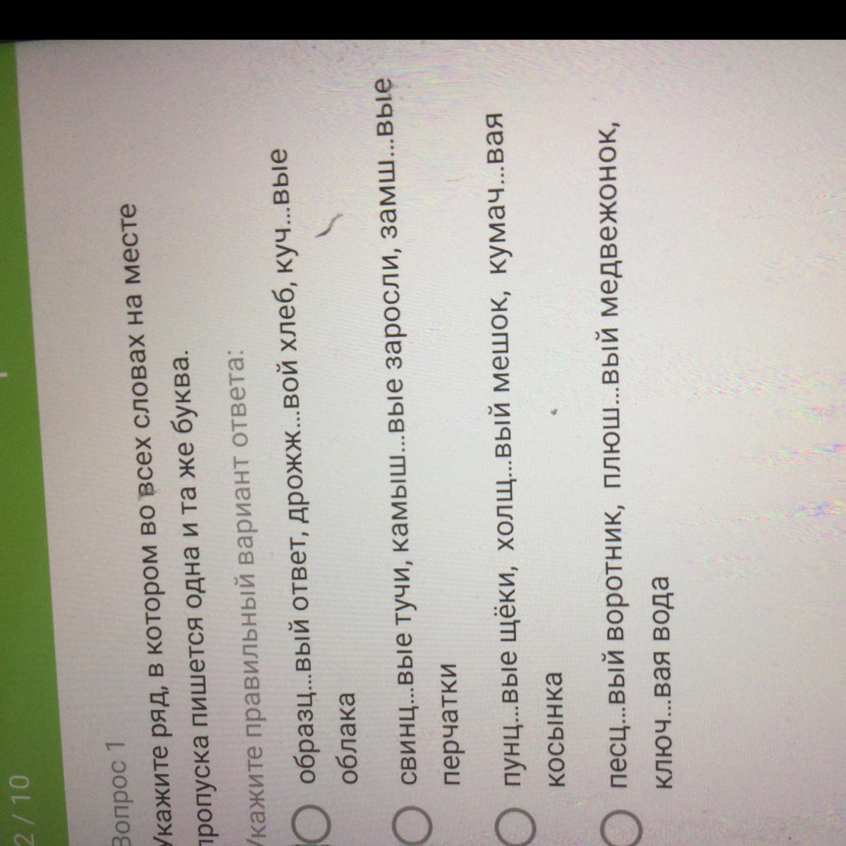 Убираем сразу первый столбик там дрожжевой пишется через е а образцовый через о, тоже самое и во втором столбик свинцовые через о замшевые через е, и в 3 столбике у нас везде пишется буква о и это наш правильный ответ.