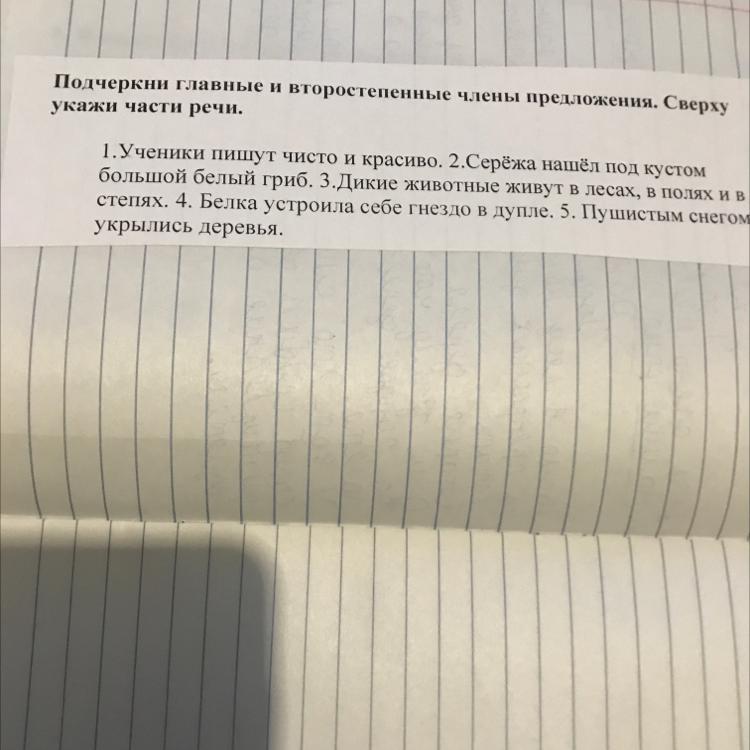 Подчеркни главные и второстепенные члены предложения. Сверху