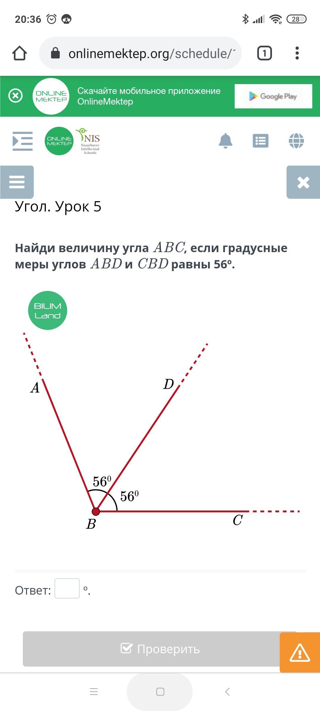 ну если они отдельны 56,то прямая вершина ВД дополнительная до 90