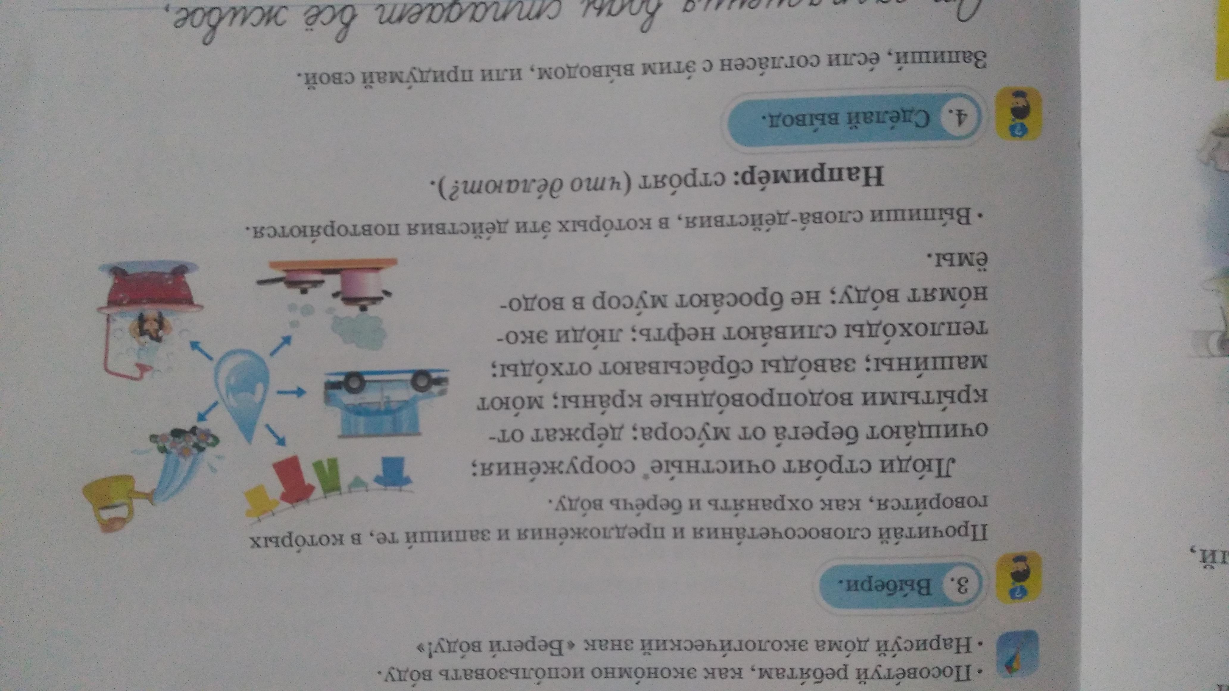 3 задание - люди экономят воду, не бросают мусор в водоёмы.