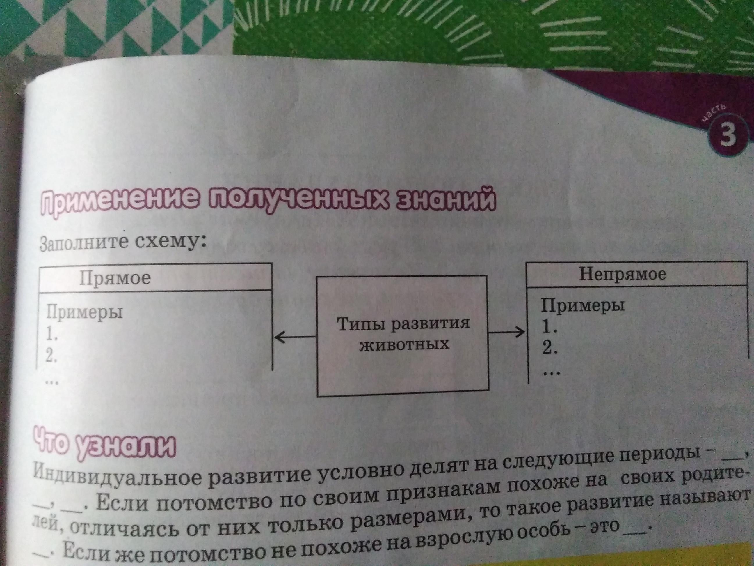 Заполните схему: Прямое типы развития животных