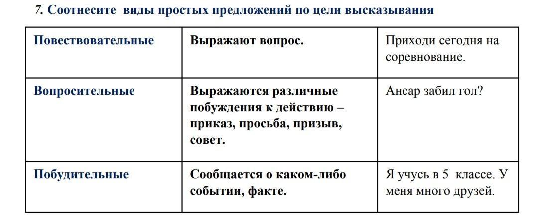 соотнесите виды простых предложений по цели высказывания очень надо пожалуйста помогите