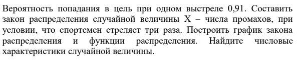 Сл.вел. Х - число промахов для трёх выстрелов.