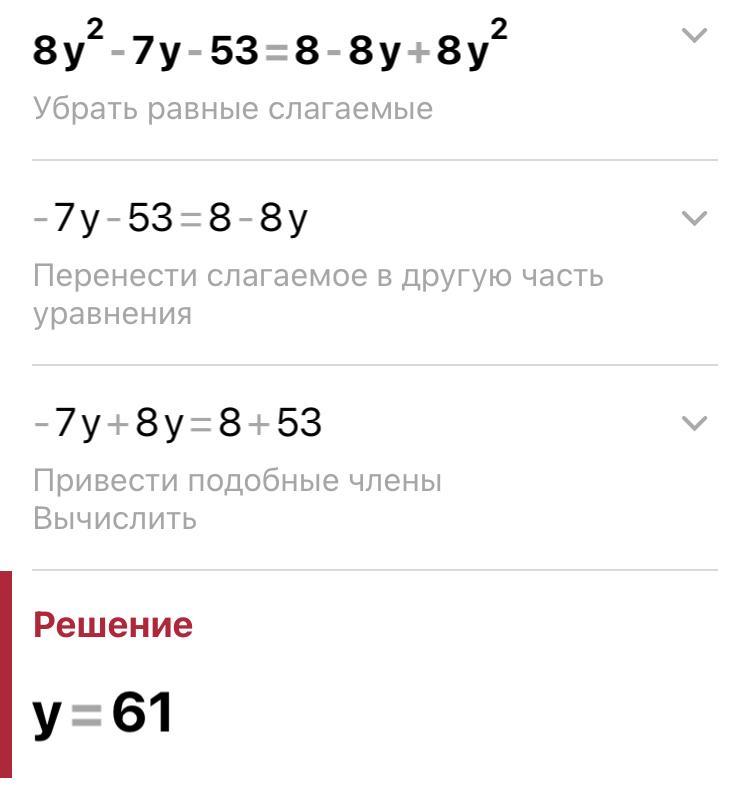 Дурите мозг, если честно. Не сокращаются одинаковые числа никогда. В данном уравнении, переносят 8у^2 через равно соответственно знак меняется. А противоположные числа в результате вычитания/сложения дают 0, следовательно смысла не имеют и вычёркиваются