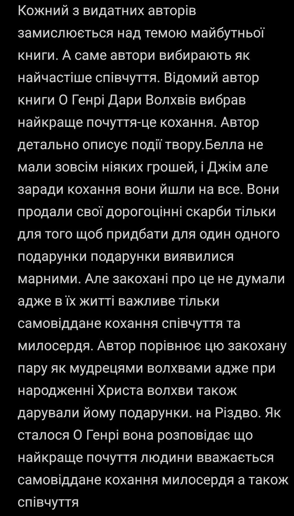 Твори ( "Дари Волхвів" - О. Генрі; "Чарівна крамниця" - Герберт Велз; "Павутинка" - Рюноске Акутагава).