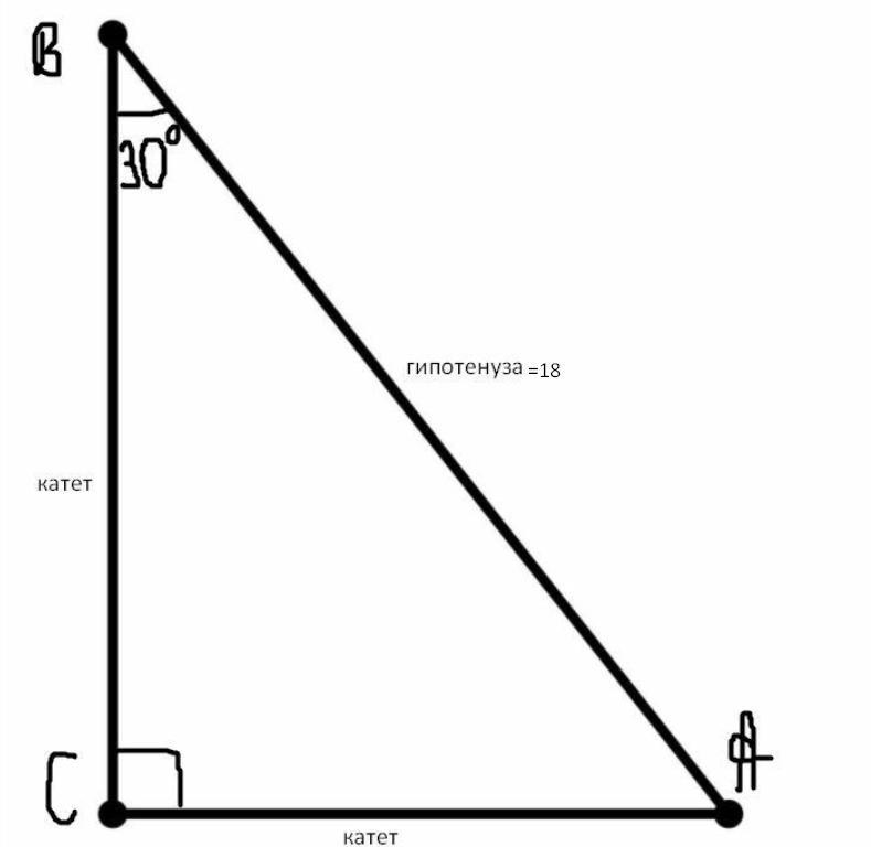 sin30°=CA/18 ⇒ CA= 18*sin30° = 18*1/2= 9 (дм)