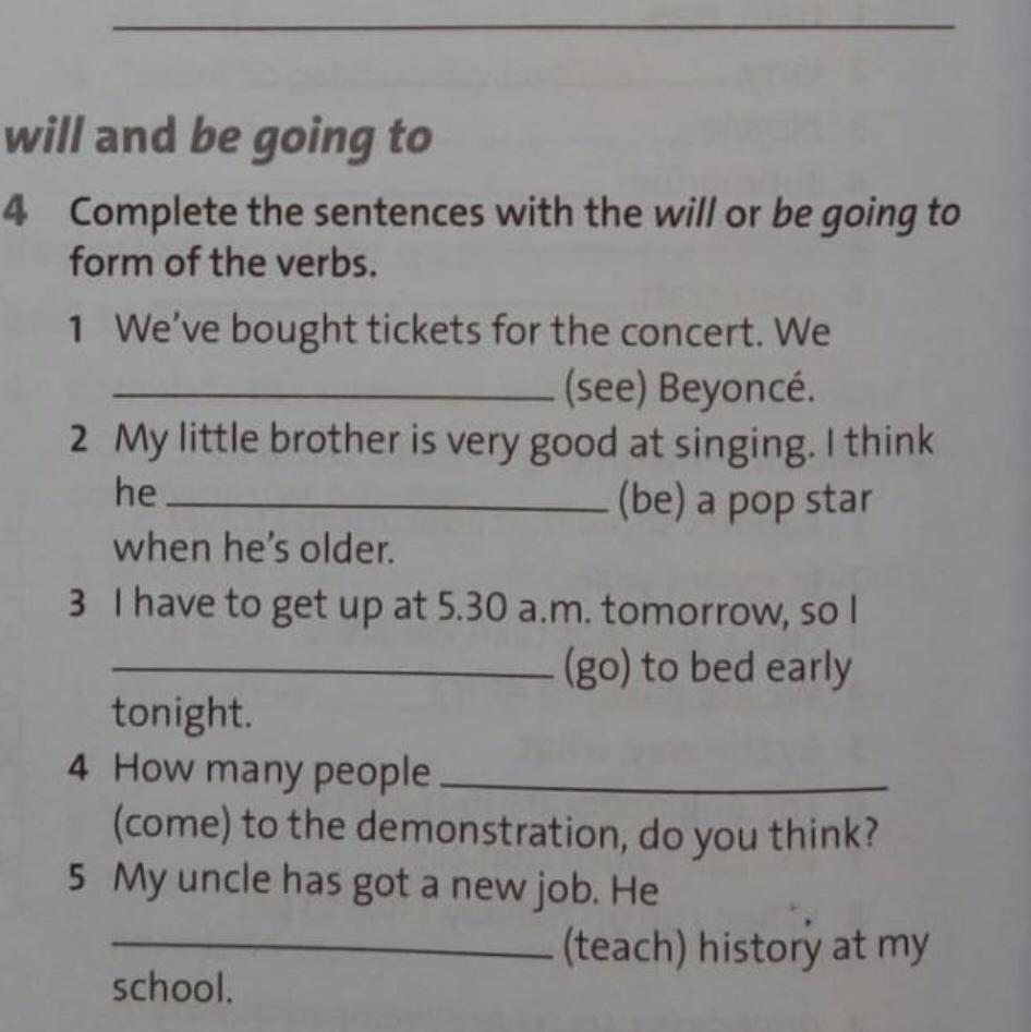 4 complete the sentences with the will to be going from of the verbs 1 We've bought ticket for the concert.we (see) Beyonce