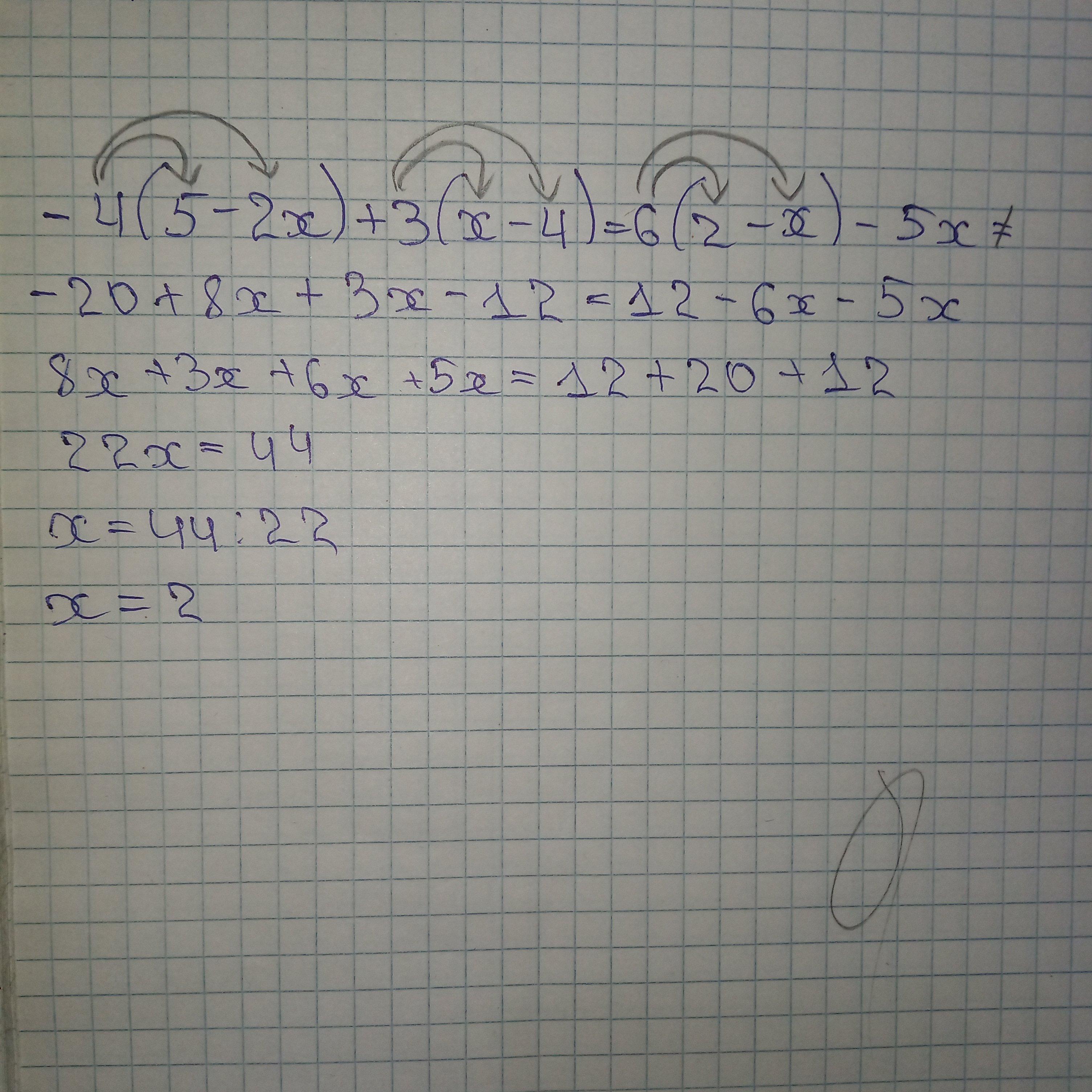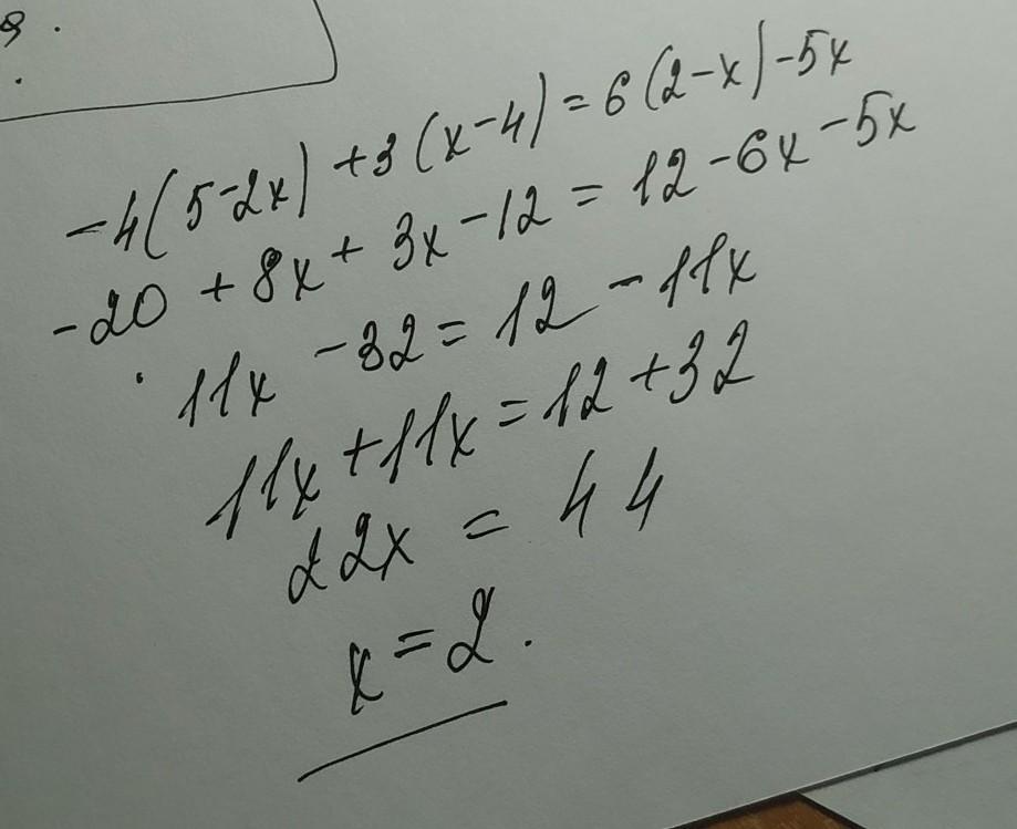 -4(5-2x) +3(x-4)=6(2-x) -5x