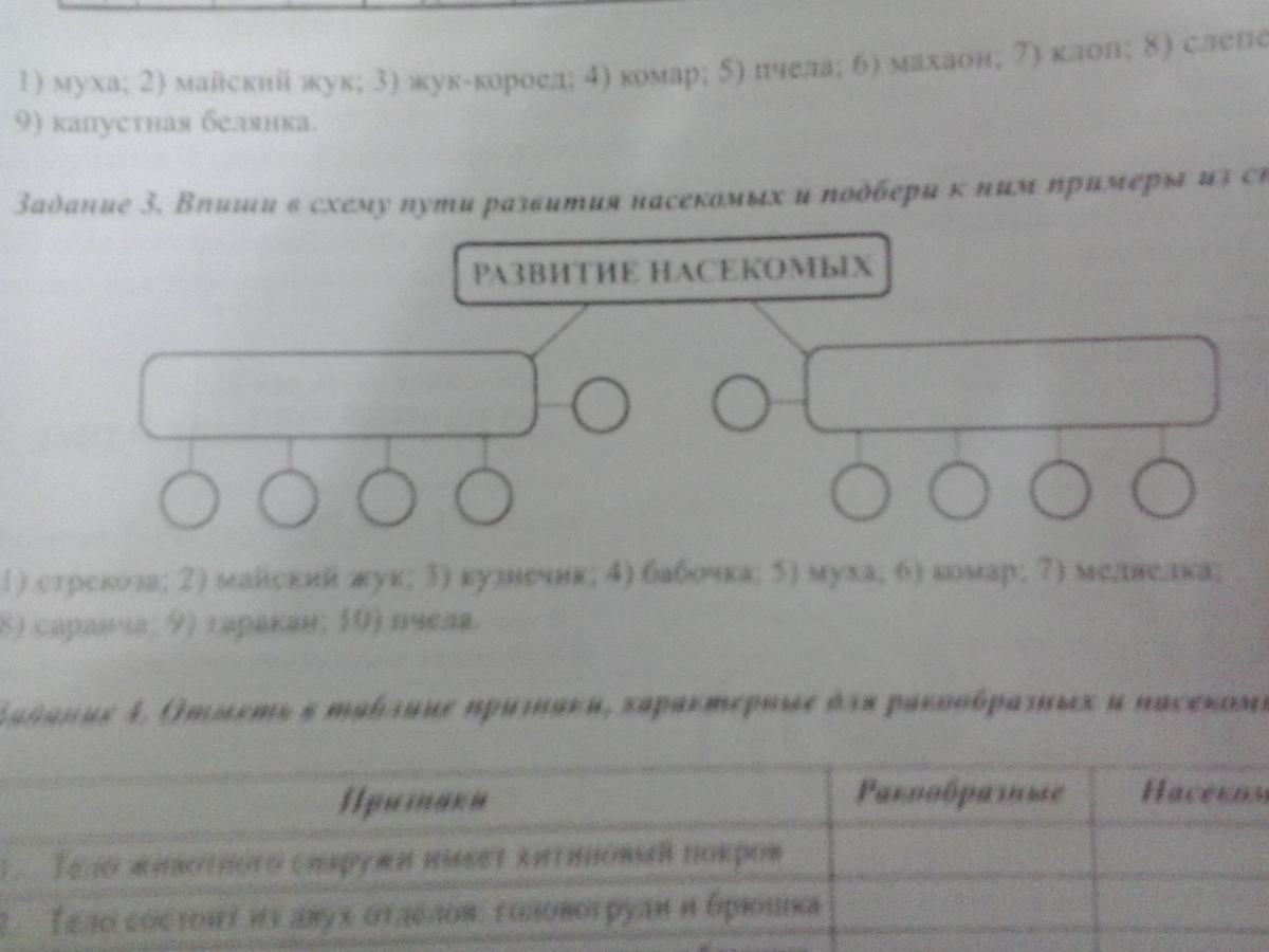Слева напишем с полным метаморфозом, справа - с неполным метаморфозом. Слева у нас - 2, 4, 5, 6, 10; справа- 1, 3, 7, 8, 9